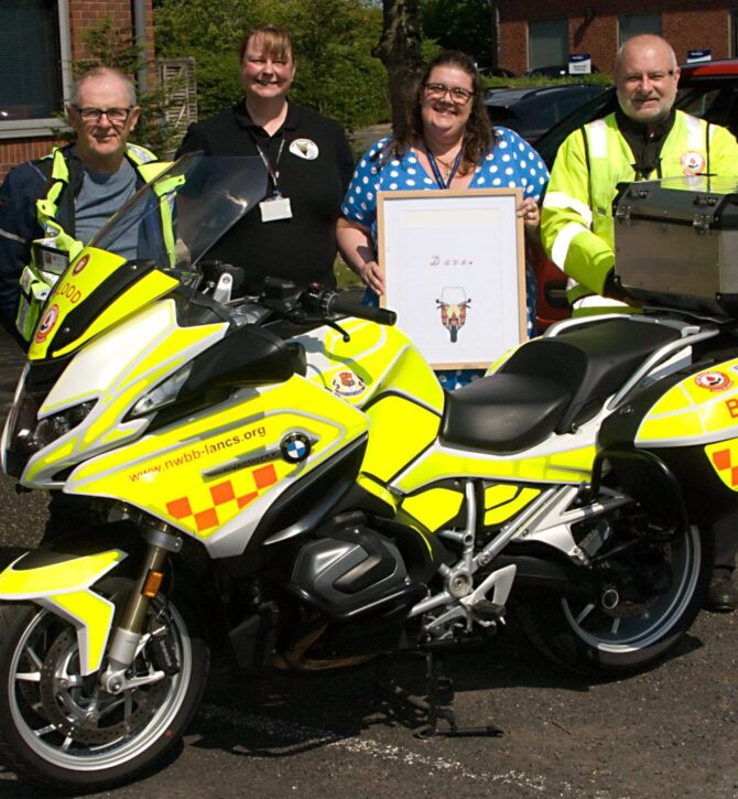 We sponsor one of the North West Blood Bikes, which is an invaluable service that sees blood, medication and other vital medical equipment delivered quickly by motorbike.